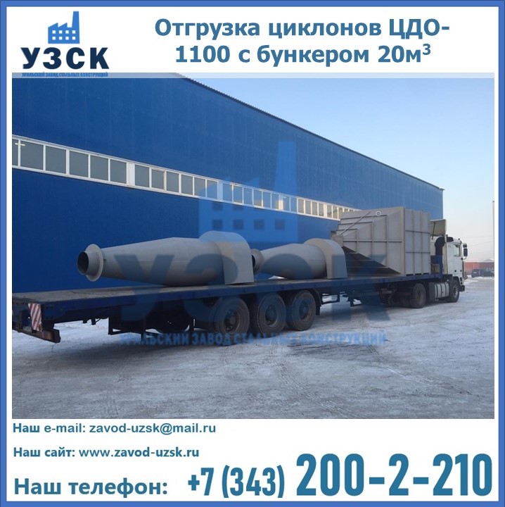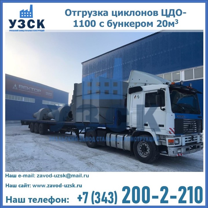 Циклоны ЦДО-1100 с бункером на 20 кубов были отгружены в декабре 2018 года в г. Новосибирск Люберцы.