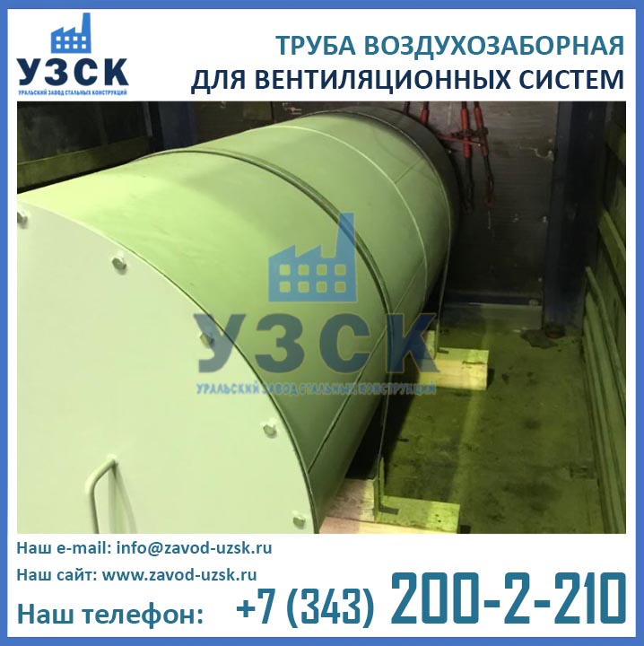 Труба воздухозаборная — это воздуховод, необходимы для обеспечения притока сежего воздуха в помещение, а также вытяжки из него. Воздухозаборные трубы широко применяются в системах приточной вентиляции, пожаротушения, в теплообменных и иных системах промышленного и бытового назначения. Подробнее о данной продукции можно узнать на странице нашего сайта Воздухозаборные трубы систем приточной вентиляции