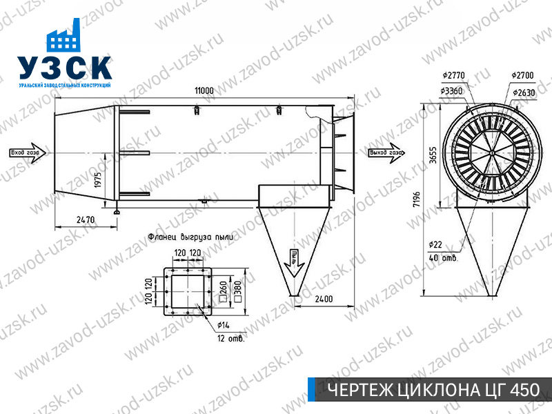 | ЦГ450 | 450000 | 11000 | 2470 | 750 | 2800 | 3100 | 2630 | 3360 | 2260 | 15 |