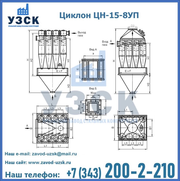 Завод «УЗСК» в Люберцах предлагает большой выбор циклонов ЦН-15-500×8УП и прочих устройств, полностью укомплектованных и готовых к эксплуатации. Мы гарантируем соответствие оборудования всем требованиям ГОСТ и ТУ, износостойкость и высокую производительность предлагаемого оборудования. Уральский Завод Стальных Конструкций изготавливает и продает надежное, эффективное и производительное оборудование, имеющее длительную гарантию и большой эксплуатационный ресурс. Если требуется изготовить циклон нестандартных размеров, то такой вариант выполнения заказа тоже предусмотрен, так как предприятие имеет собственные производственные площади и надежных поставщиков. На все поставляемое или производимое оборудование имеются чертежи и прочая техническая документация. Заказать и купить циклоны или прочее оборудование высокого качества и по доступной цене можно через наш сайт или по указанному в разделе «Контакты» телефону.