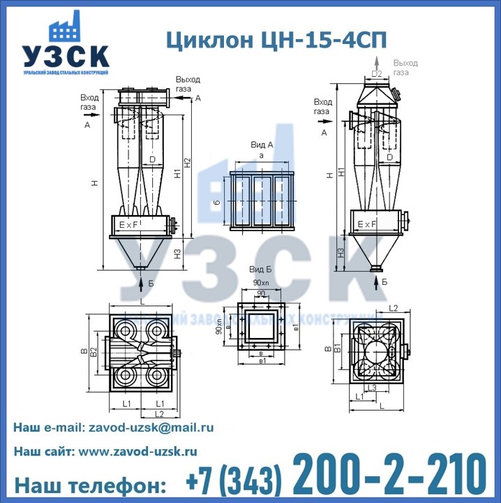 Завод «УЗСК» в Люберцах предлагает большой выбор циклонов ЦН-15-800×4СП и прочих устройств, полностью укомплектованных и готовых к эксплуатации. Мы гарантируем соответствие оборудования всем требованиям ГОСТ и ТУ, износостойкость и высокую производительность предлагаемого оборудования. Уральский Завод Стальных Конструкций изготавливает и продает надежное, эффективное и производительное оборудование, имеющее длительную гарантию и большой эксплуатационный ресурс. Если требуется изготовить циклон нестандартных размеров, то такой вариант выполнения заказа тоже предусмотрен, так как предприятие имеет собственные производственные площади и надежных поставщиков. На все поставляемое или производимое оборудование имеются чертежи и прочая техническая документация. Заказать и купить циклоны или прочее оборудование высокого качества и по доступной цене можно через наш сайт или по указанному в разделе «Контакты» телефону.