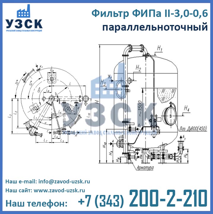 Актуальные цены на ФИПаII-3,0-0,6 в Люберцах Вы можете уточнить в отделе продаж Уральского Завода Стальных Конструкций (производитель ионитных фильтров), для этого заполните форму заказа внизу страницы.
