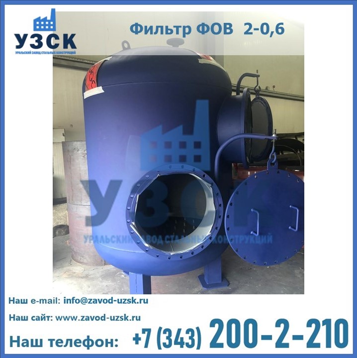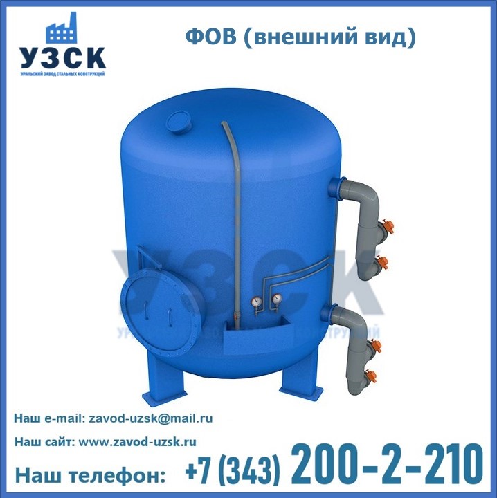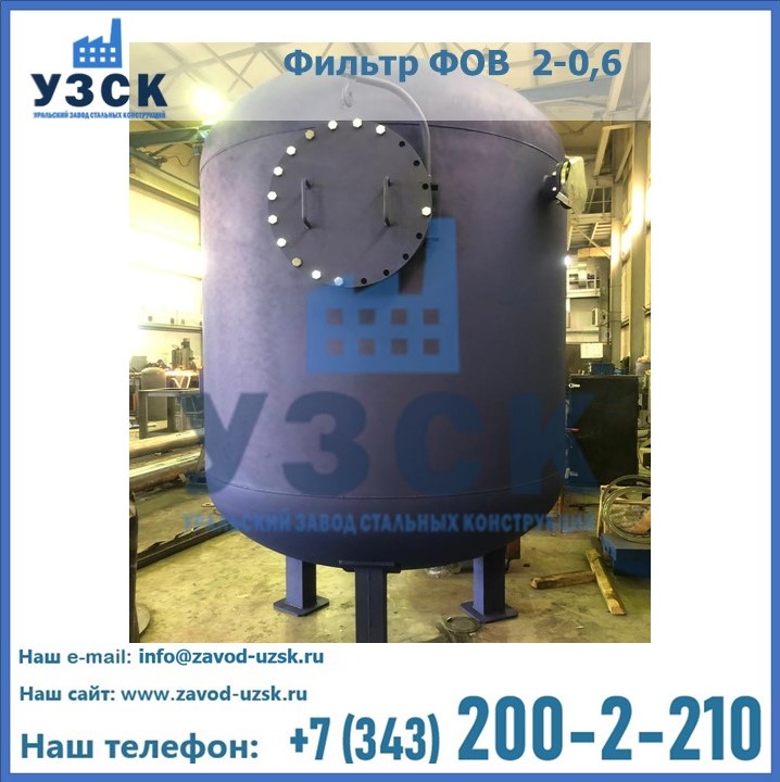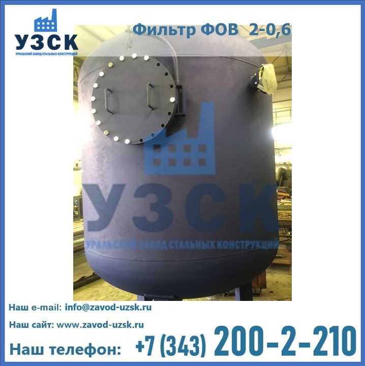 Удаление взвешенных веществ различного уровня дисперсности из рабочих жидкостей эффективно проводит фильтр осветлительный типа ФОВ (скорый или механический) — вертикально-цилиндрической формы установка, разработанная для систем водоподготовки различного класса. Оборудование представляет собой однокамерный агрегат для очистки воды рекомендованный для применения на станциях очистки стоков, в коммунальных котельных, на ТЭЦ, в промышленных отопительных системах и пр. Заказать производство ФОВ фильтров предлагает наш Уральский завод стальных конструкций в Люберцах. У нас можно купить фильтрационное оборудование различного класса и типа, в том числе фильтры ФОВ из нержавеющей стали.