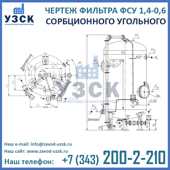 Если вы ищете фильтры ФСУ-1,4-0,6 в Люберцах от изготовителя, то Вы на правильном пути! Уральский завод стальных конструкций – непосредственный производитель сорбционных фильтров ФСУ, предлагающий самые выгодные цены на ФСУ-1.4-0.6 в Люберцах. По окончании процесса производства угольные фильтры проходят гидравлические испытания пробным давлением 0,9 МПа на аттестованном гидростенде, находящимся в собственности завода УЗСК. Мы гарантируем высокое качество выпускаемой продукции, и в этом уже убедились ведущие предприятия промышленного сектора России и стран ЕАЭС (см. раздел «Наши клиенты»).