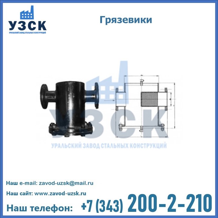 Уральский Завод Стальных Конструкций занимается производством и реализацией грязевиков в городе Люберцы, в наличии устройства горизонтального и вертикального типа, соответствующие всем требованиям и стандартам, в том числе условиям «Правил устройства и безопасной эксплуатации».