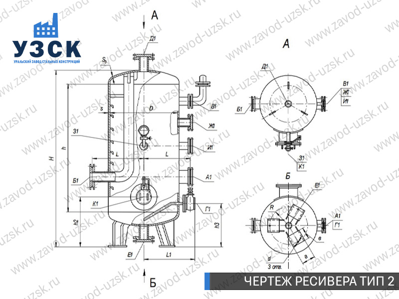 Ресивер высокого давления — это специализированное оборудование, разработанное для накопления и хранения воздуха или газа под давлением, а также для подачи рабочей среды на технологические линии предприятий. Завод «УЗСК» осуществляет изготовление газовых и воздушных ресиверов (воздухосборников) любой сложности. Мы предлагаем самые выгодные цены на ресиверы из углеродистой стали, ресиверы из легированной стали и ресиверы из нержавеющей стали в Люберцах.