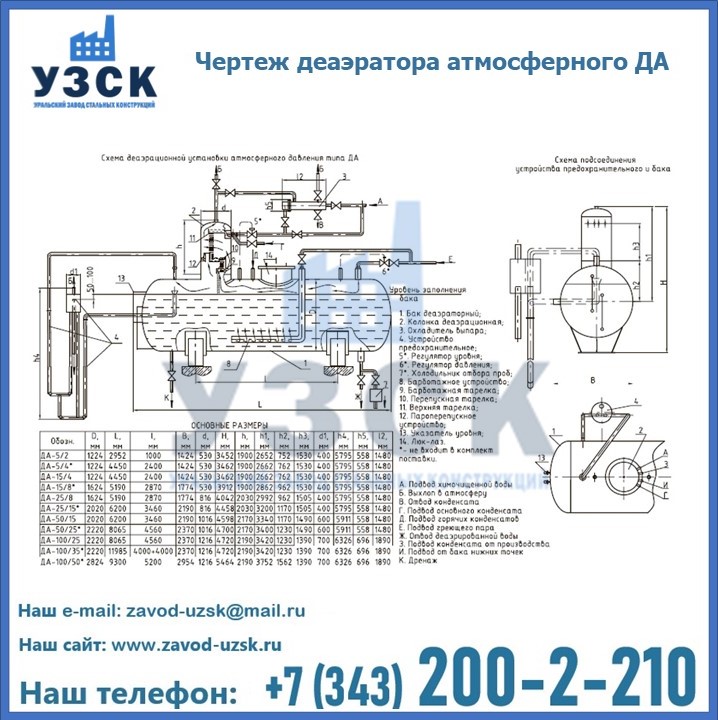Приобрести качественное оборудование, в том числе, деаэраторы ДА, можно в компании УЗСК в Люберцах. Мы предлагаем долговечную и надежную продукцию по приемлемой цене. Заказать и купить деаэраторы или другие изделия высокого качества можно через сайт Уральского Завода Стальных Конструкций, или позвонив по указанному в разделе «Контакты» телефону.